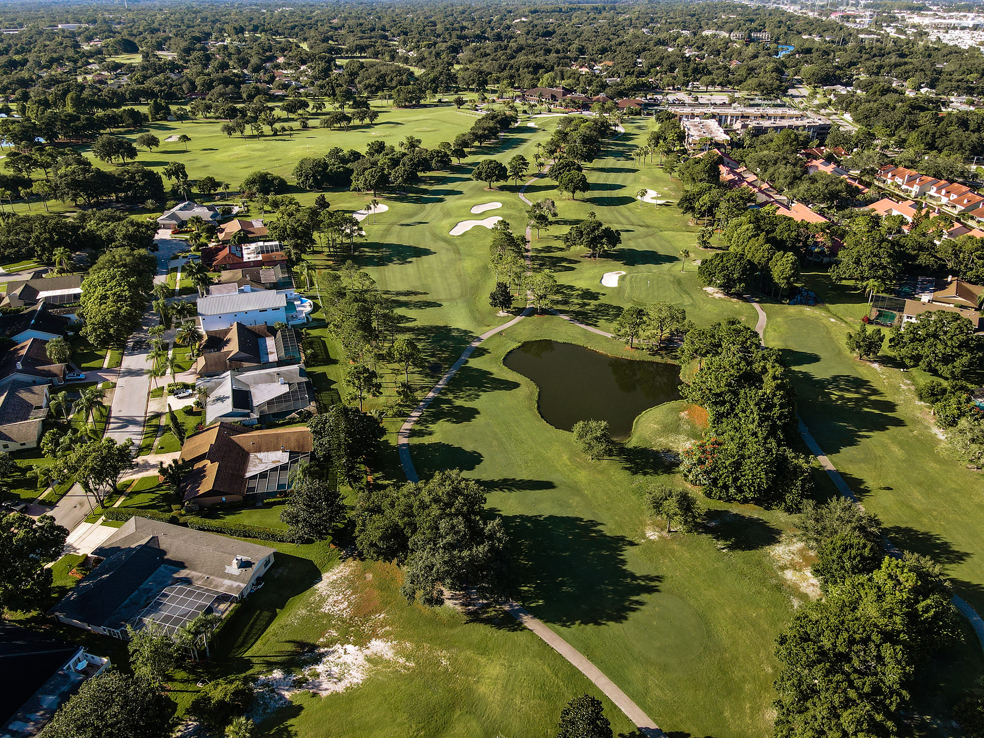 Great Par 3 - Signature Hole for the Bayhead Course. Half island green so don't miss left. Right is safe