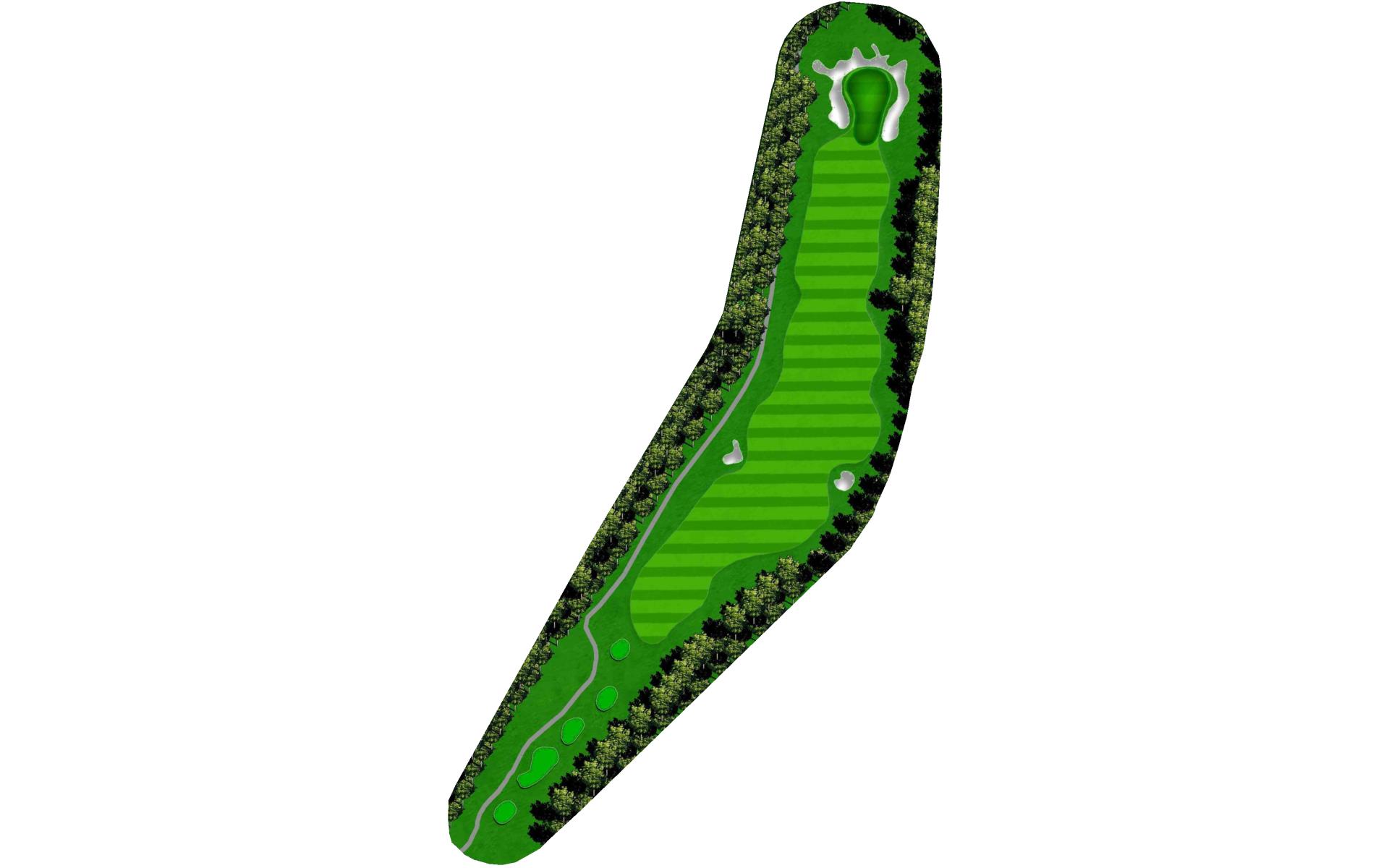 The opening hole is a short par 4 that requires players to hit a blind tee shot over a ridge. Finding the fairway is crucial as it will set up a birdie opportunity. When hitting the approach shot, players must be careful to avoid the pond along the left side of this green that runs away.